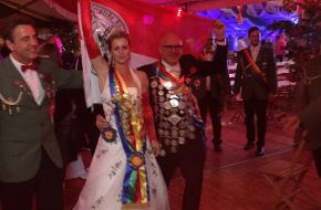 Bei unseren Kameraden in Albaxen konnte Hauptmann Frank Lohmann seine Königskompanie "präsentieren". Mit einer starken Truppe und dem Königspaar Christina und Christian Krog nebst Hofstaat nahm man am Umzug