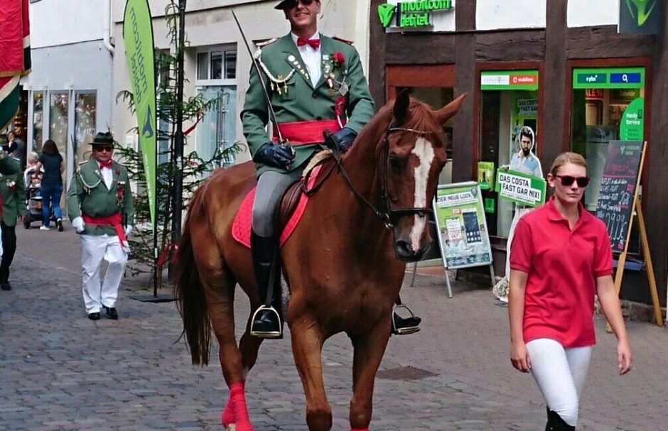 Marsch der Gilde in die Stadt zur Nikolaikirche mit Proklamation