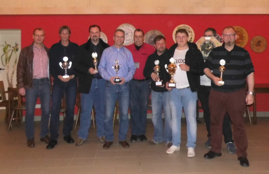 Nach einem langen Stechen standen gegen 23:00 Uhr endlich die Sieger fest und unser amtierender Grünkohlkönig, Hans-Ulrich Zayc, durfte die Ehrungen vornehmen.