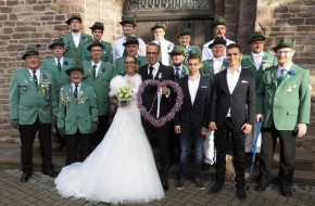 Die Erste Kompanie hat eine Ehrenabordnung gestellt und dem Brautpaar vor der Kirche