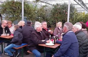 Im Gewächshaus, geschützt vor Kälte im mediterranem Umfeld, konnten sich die Gäste niederlassen, lecker essen, trinken und das eine oder andere Gespräch unter Kameraden führen. Das amtierende Königs- und Kronprinzenpaar war auch anwesend und unterstrich damit nochmals die Wertigkeit dieser Veranstaltung.