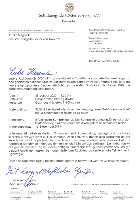 Anmeldungen bitte bis zum 14.12.2019 bei Reinhold Fahle oder Tobias Thien.