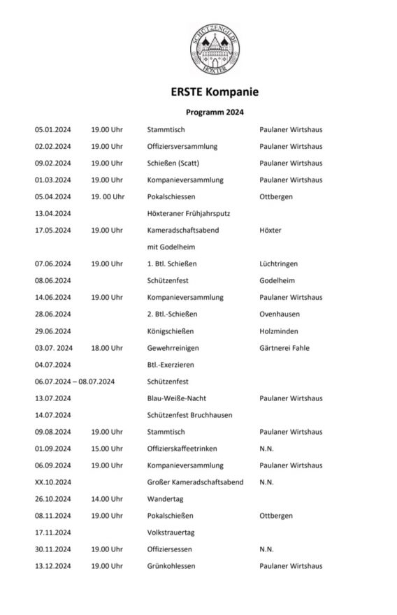 Das Schützenfest 2024 ist sicherlich der Höhepunkt des Jahres, aber der Vorstand hat sich ein abwechslungsreiches Jahresprogramm überlegt, welches wir Euch über unsere digitalen Kanäle zur Verfügung stellen.