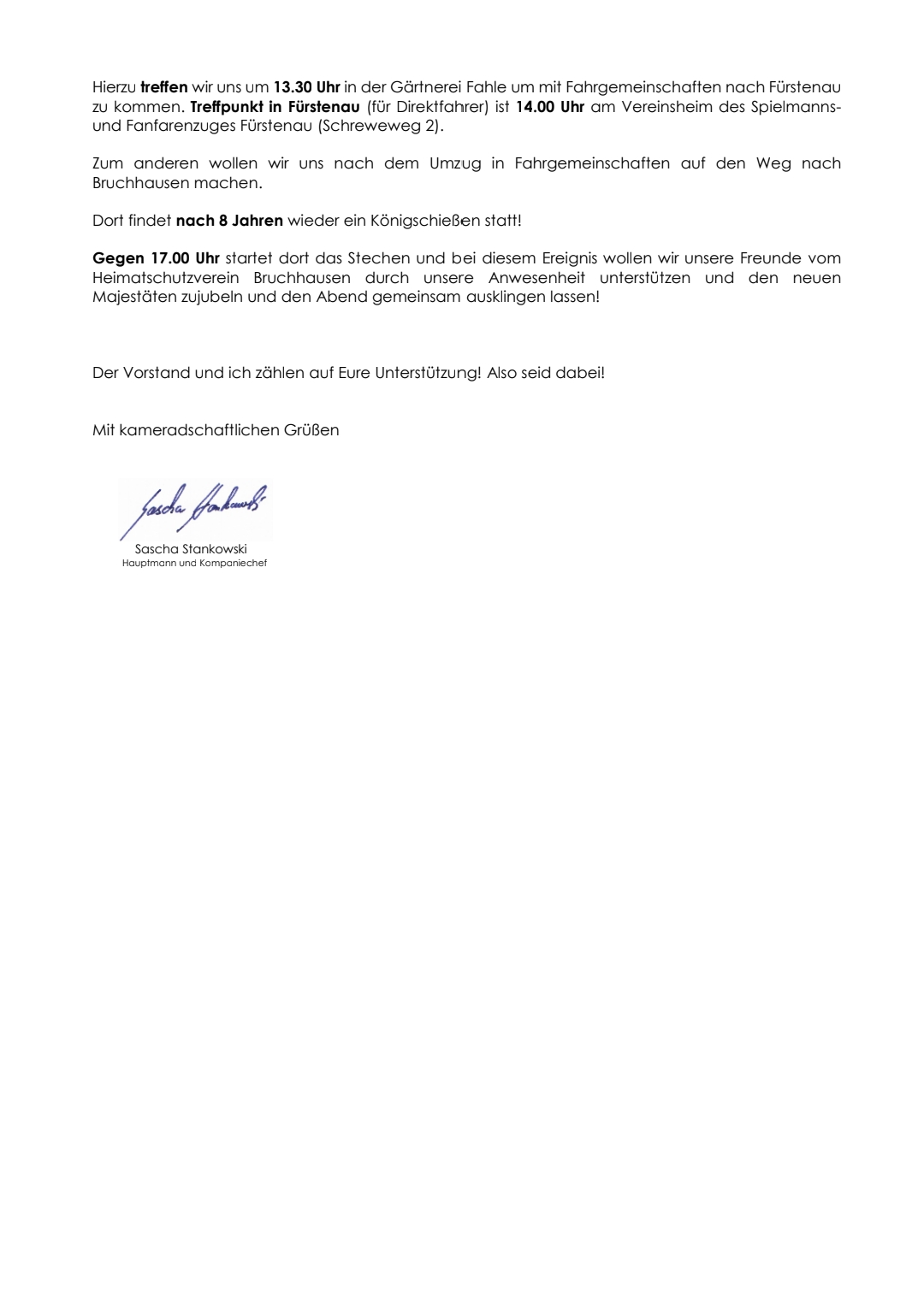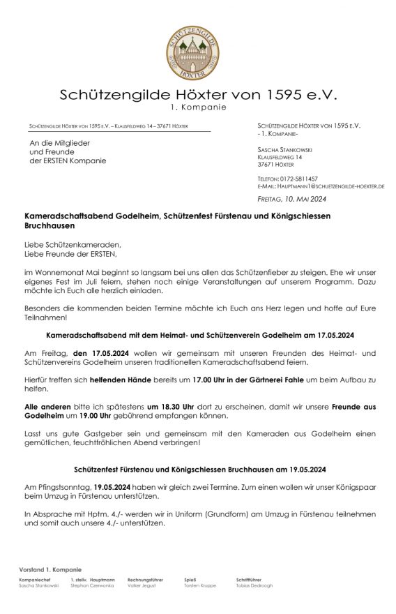 anbei eine Information von unserem Hauptmann zu den anstehenden Terminen.