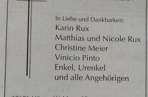 das Ehrenmitglied der Schützengilde Paul Rux ist im Alter von 94 Jahren verstorben. Die Trauerfeier und Beissetzung findet am Freitag 24.05.24 um 11.00 Uhr statt.