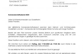 am Freitag den 17.05.2024 findet um 19.00 Uhr unser Kameradschaftsabend mit