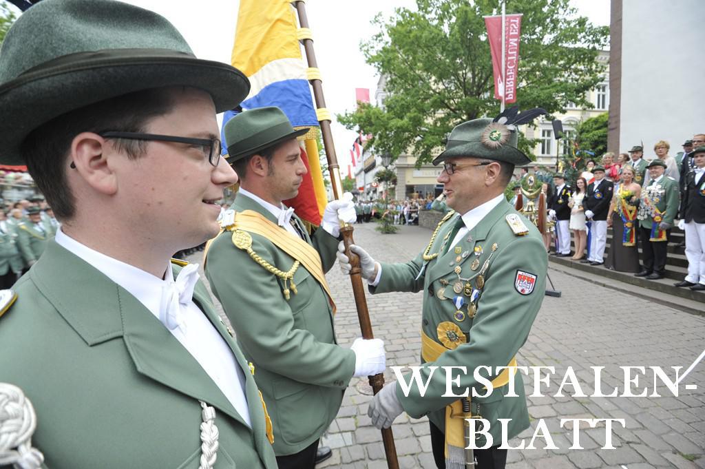 Christian Manz, Jens Sander und Stefan-Gustav Freytag lösen passend zum diesjährigen Schützenfest Heinz Schäfer, Günter Potthast und Reinhard Potthast als Fahnengruppe der Vierten ab!