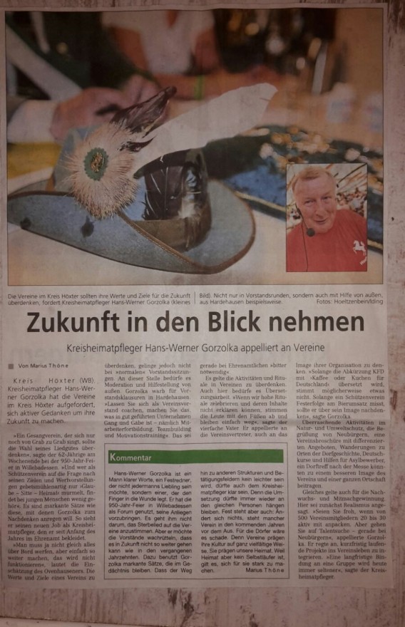 Nun warnt der Kreisheimatpfleger Hans-Werner Gorzolka mit seinem Bericht in der Westfalen-Blatt vom 01.09.2015 vor einer Negativ- entwicklung in den Vereinen, welche die Vierte Kompanie ebenfalls befürchtete und mit ihrem Antrag "Projekt Zukunft" entgegenwirken wollte.
