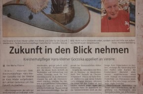 Nun warnt der Kreisheimatpfleger Hans-Werner Gorzolka mit seinem Bericht in der Westfalen-Blatt vom 01.09.2015 vor einer Negativ- entwicklung in den Vereinen, welche die Vierte Kompanie ebenfalls befürchtete und mit ihrem Antrag "Projekt Zukunft" entgegenwirken
