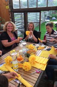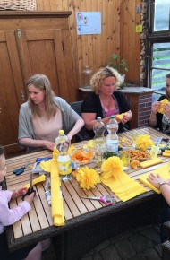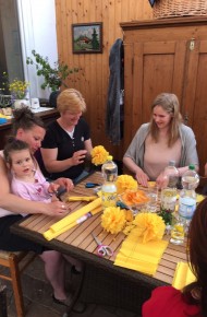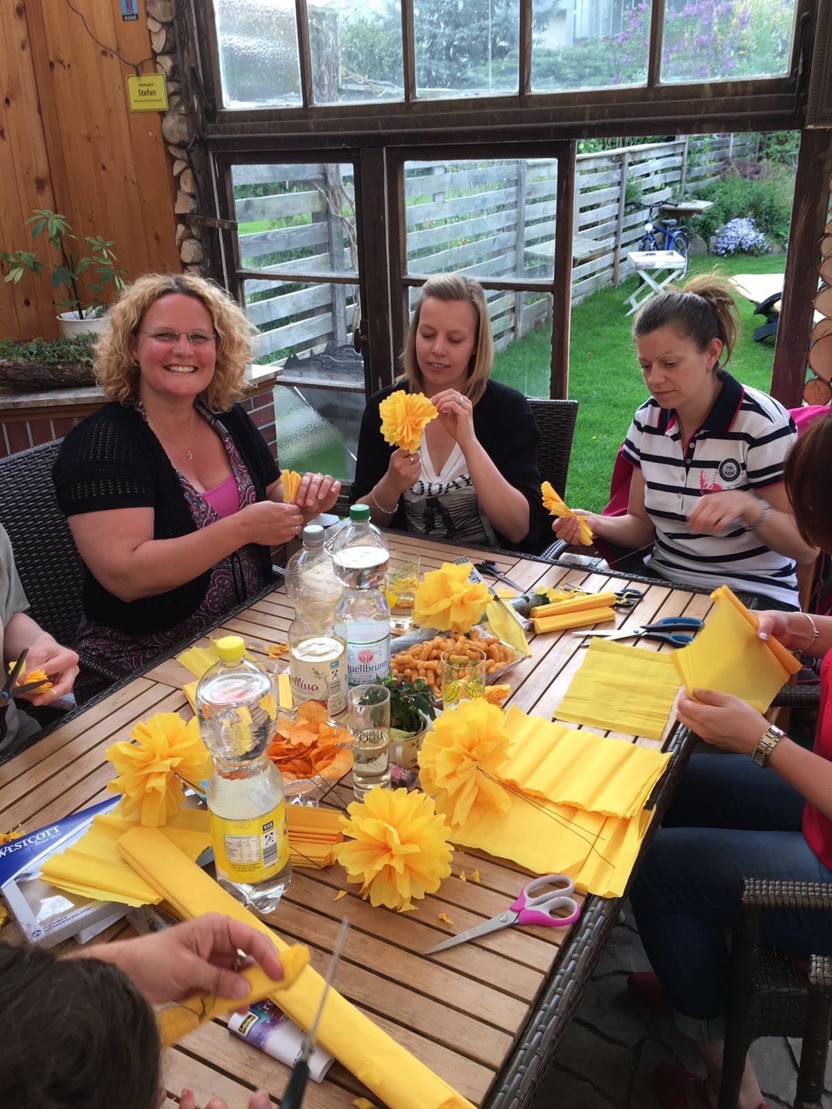 Die Gruppe trifft sich bereits seit Ende April jede Woche, um in akribischer Kleinarbeit Tisch- und Wandschmuck anzufertigen und neue Ideen umzusetzen, um somit während des Schützenfestes für ein angenehmes Ambiete in den Quartieren der Vierten Kompanie zu sorgen.