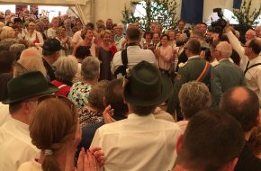 Viele helfende Hände der Vierten Kompanie schmückten traditionell am Samstagmorgen das Festzelt.