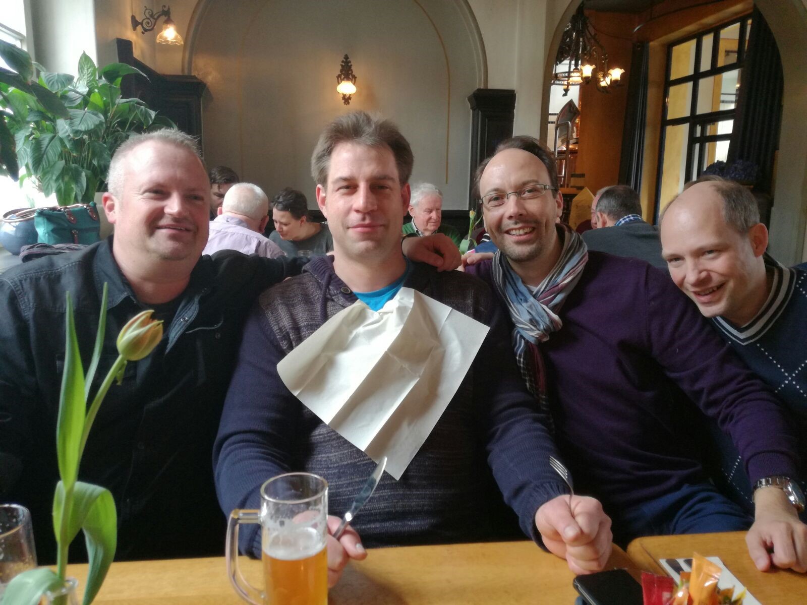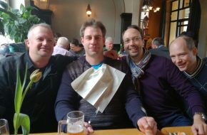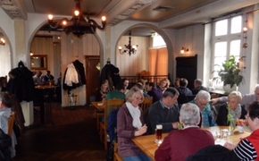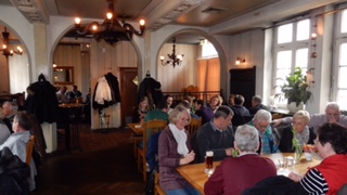 Nach der Begrüßungsansprache durch Hauptmann Stefan Schrader und einigen Erläuterungen zum weiteren Ablauf der Fahrt durch das Organisationsteam in Person von Winfried Warneke und Martin Kreuzer kam man gegen Mittag im Hotel Brenner in Bielefeld an, wo es nach dem Eincheken auch schon mit dem Bus weiter in das Brauhaus Albrecht ging. Hier wurde ein deftiges Mittagessen und süffiges selbstgebrautes Bier serviert.