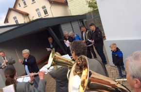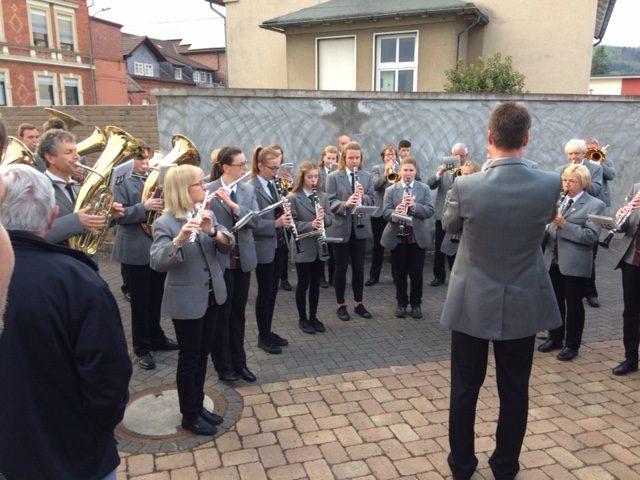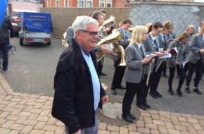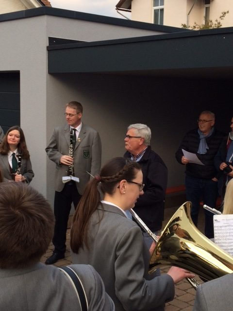 Standesgemäß wurde der Jubilar von der Blaskapelle Brenkhausen mit einem Ständchen überrascht. Natürlich ließ es sich Ansgar nicht nehmen, bei dem "Weserlied" höchstpersönlich den Taktstock zu schwingen.