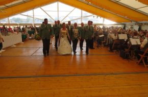 Nach dem anschließenden Einmarsch ins Festzelt vergaßen einige Schützenbrüder die Zeit und blieben bei guter Musik und kühlen Getränken bis in die tiefen Abendstunden.