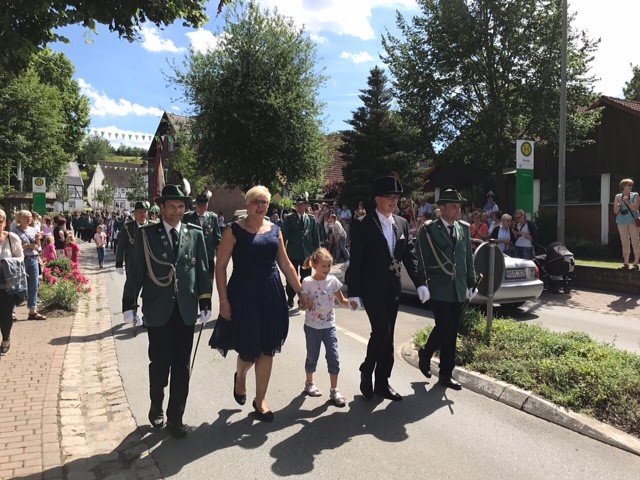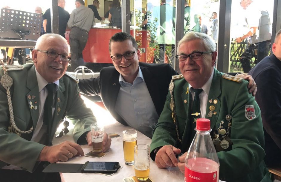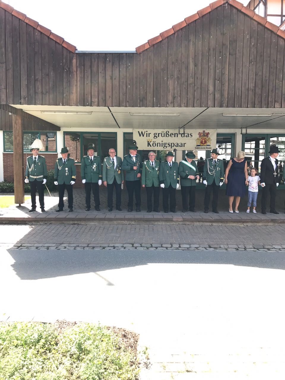 Da es sich bei dem neuen Königspaar um den Schwiegersohn und die Tochter unseres Schützenbruders Jürgen Ditter handelt, ließen es sich unsere Schützenbrüder Jürgen Ditter, Jens Sander und Angar Meier-Tegetmeier nicht nehmen, dem neuen König und seiner Königin am Schützenfrühstück im Namen der Vierten Kompanie ihre Aufwartung zu erweisen.