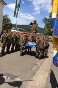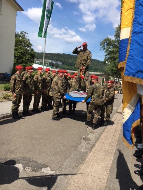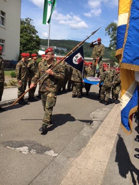 Am heutigen Donnerstag, den 28. Juni erklang der letzte Dienstapell für Thomas Heyer, dem Spieß unserer Partnerkompanie, dem 4./ABC-Abwehrbataillon 7.