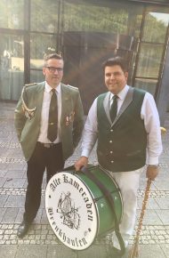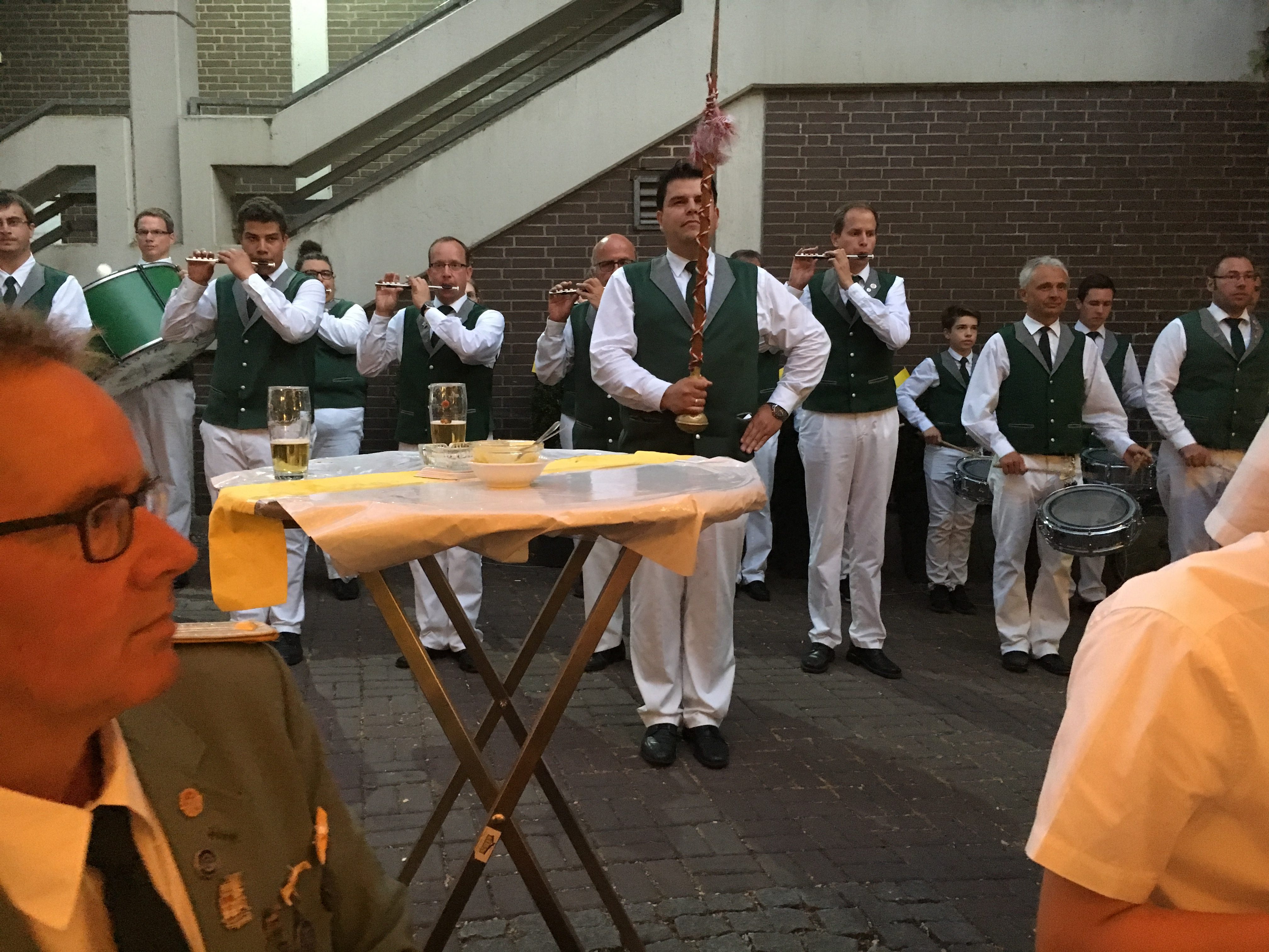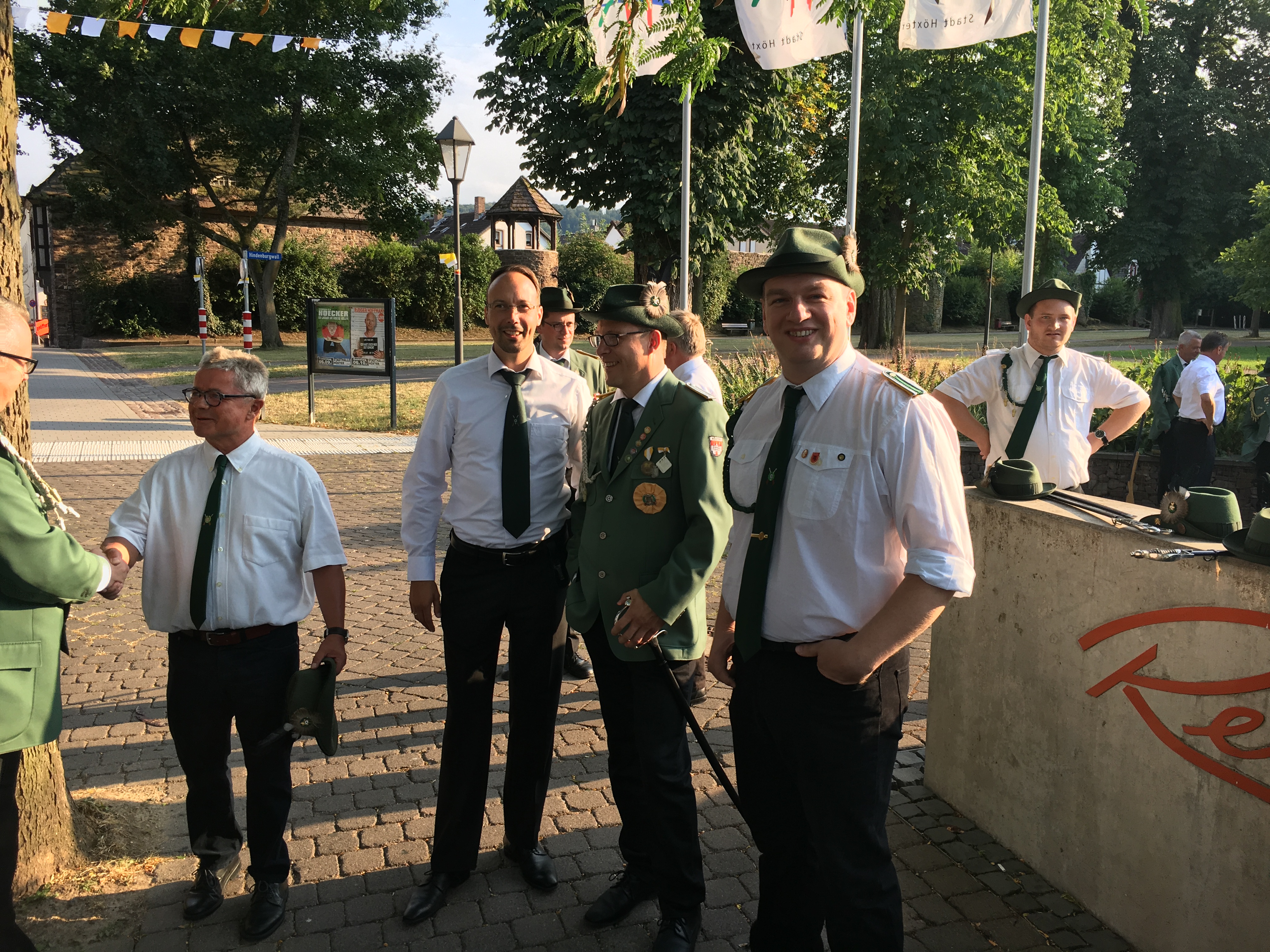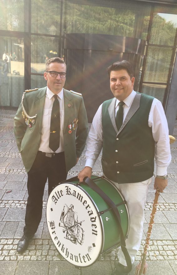 Hauptmann Stefan Schrader und der "Neukönig" Frank Wiesemann, der ab kommenden Montag in Amt und Würden treten wird, bedankten sich für die bisherige sehr gute Beteiligung und hoffen auf ein, Zitat: "Geiles Schützenfest 2018 und zwei schöne Jahre als Königskompanie"!