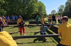 Neben einer Piratenhüpfburg und einer riesigen Torwand für die vielen kleinen Gäste gab es auch einen Menschenkicker, an dem sich acht Mannschaften, darunter ein Damen- und ein Nachwuchsteam, in einem spannenden Turnier messen konnten.