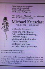 Michael Kurschat, Kompaniemitglied der Vierten Kompanie verstarb am letzten Samstag, den 27. Oktober 2018.