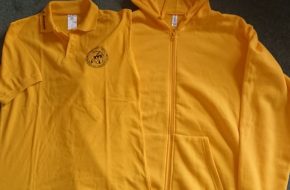 Die Sweatshirtjacke ist gelb, mit Kompanielogo und ist zu einem Betrag von 30,-€ in den Größen L bis