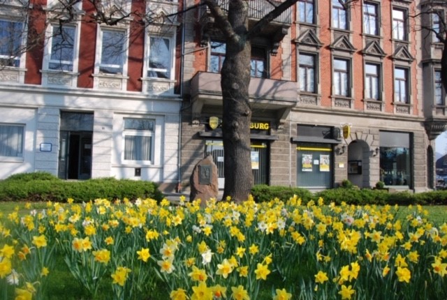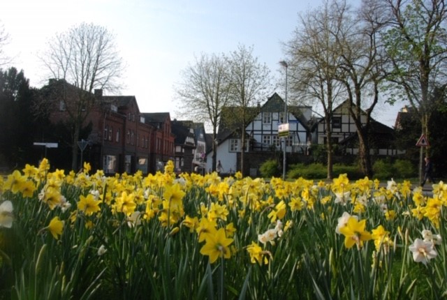 Die Vierte Kompanie hatte mit Unterstützung vieler Helfer und Helferinnen im den Bereich des ehemaligen Springbrunnens am "Berliner Platz" die gelben Narzissenzwiebeln eingepflanzt und kann jetzt einen herrlich blühenden "Berliner Platz" präsentieren.