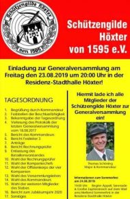 hiermit laden wir Euch zur diesjährigen Generalversammlung am Freitag, den 23. August um 20:00 Uhr in die Stadthalle Höxter ein.