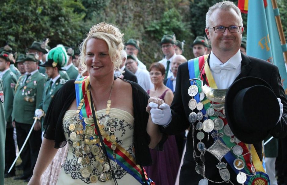 Damit war auch für das Schützenkönigspaar Frank Wiesemann und Christine Timmermann eine zusätzliche Amtszeit verbunden. Dem hatten die beiden Majestäten und das Kronprinzenpaar Nadine Wiesemann und Dirk Timmermann zugestimmt, wofür ihnen die Schützengilde sehr dankbar ist.