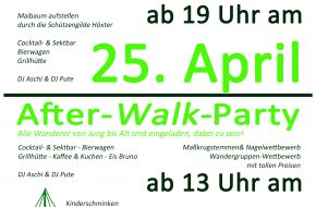 Am 01. Mai 2020 gibt es dann die After-Walk-Party ab 13:00 Uhr, zu der alle Wanderer recht