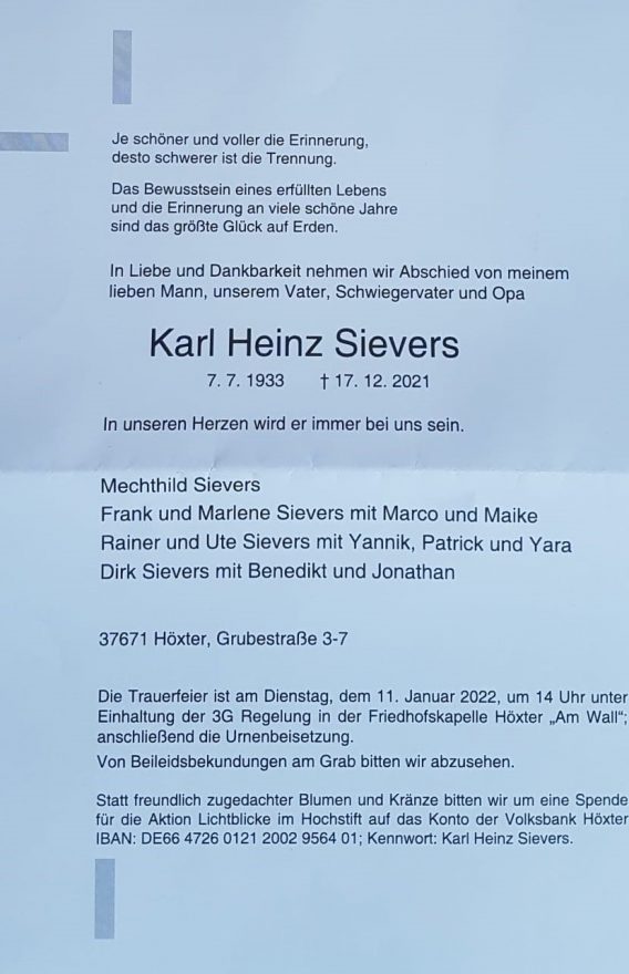 Leider müssen wir Euch mitteilen, dass unser langjähriges Kompaniemitglied