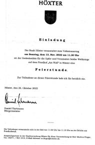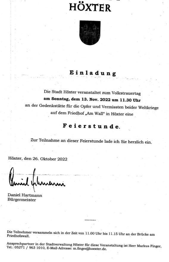 Auch dieses Jahr treffen wir uns am Volkstrauertag (13. November) zur Kranzniederlegung auf dem Friedhof in Höxter.