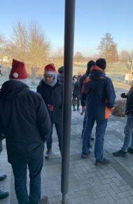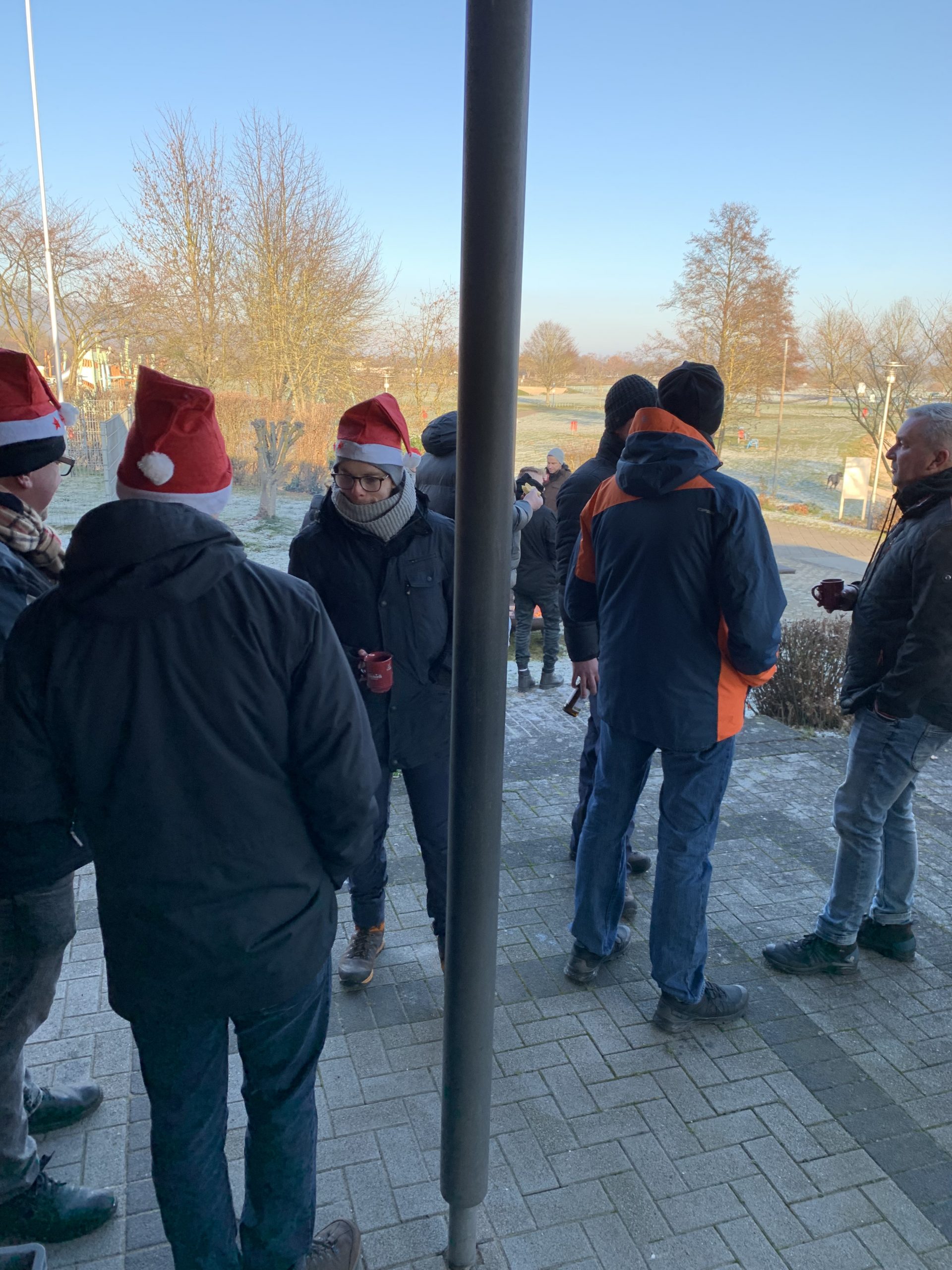 Bei traumhaften Winterwetter wurden die Teilnehmer u. a. auch der amtierende Schützenkönig Dieter Kulebrock und ein Teil seines Hofstaates unterwegs an zwei Stationen mit warmen und kalten Getränken sowie mit Proviant durch die Unteroffiziere bestens versorgt.