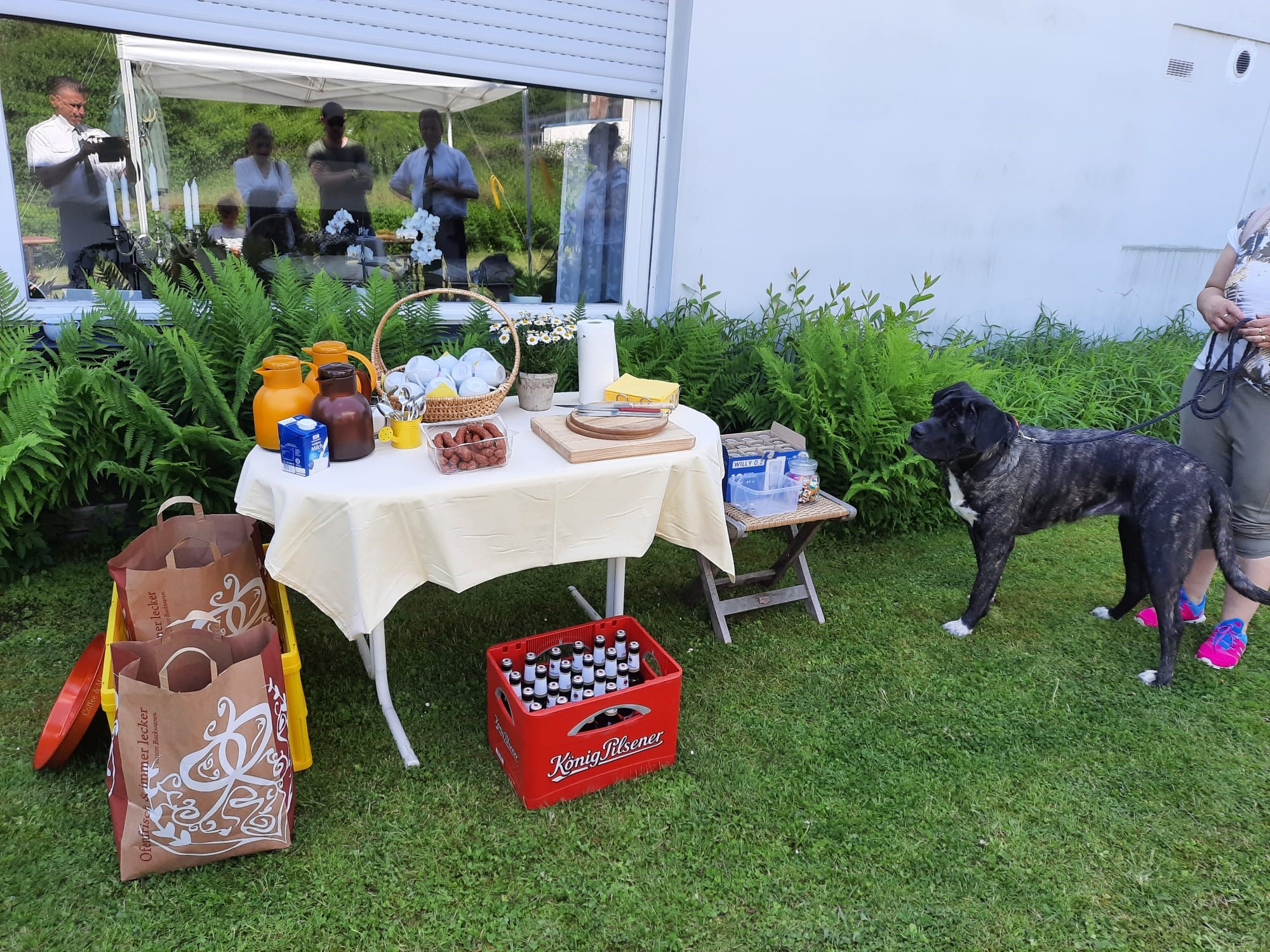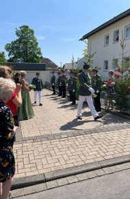 Die Schützenbrüder der Schützengilde, unter der Leitung der Vierten Kompanie, trafen sich im Vorfeld bei Martin Kreuzer, von wo es nach einer kleinen Stärkung und mit genügend Wegzehrung auf den (Wander-)-Weg nach Brenkhausen ging, um am großen Festumzug teilzunehmen.