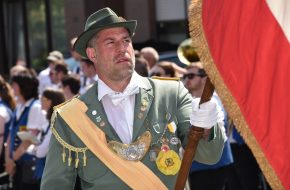Hauptmann Stefan Schrader freute sich, die fast einhundert Teilnehmer aus "seiner Kompanie", Abordnungen der drei Patenkompanien und der Bundeswehr am Ufer der Weser in Beverungen begrüßen zu dürfen.