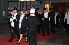 Über den roten Teppich ging es in den Ballsaal. Die Herren hatten sich größtenteils elegant in Schale geworfen und sich für Zylinder entschieden. Mit jeder Menge Gel wurden die Haare in entsprechende Form gebracht. Andere wiederum näherten sich mit ihrer Garderobe Al Capone an, während es die Damen vorzogen ein den zwanziger Jahren entsprechendes Stirnband mit aufwendigem Federschmuck zu tragen. Federboas in verschiedenen Farben bestimmten das Bild im