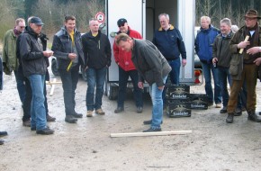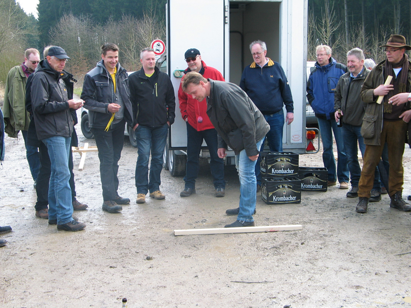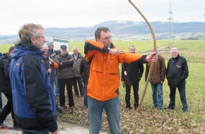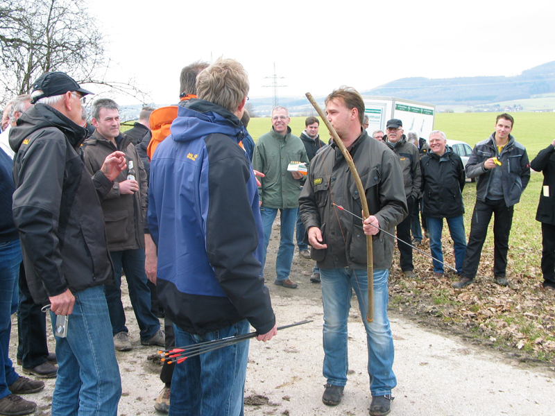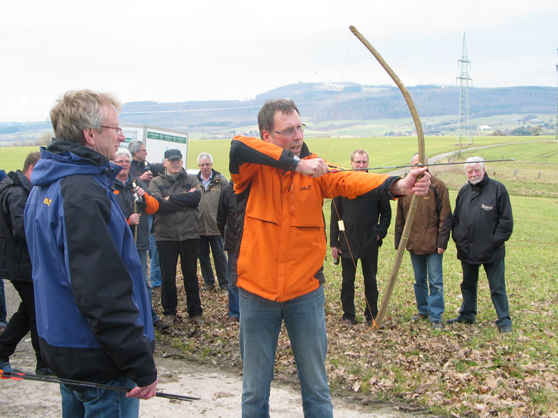 So stieg die Stimmung der etwa 80 Teilnehmer von Stunde zu Stunde. Die zweite Kompanie war mit einem starken Team angetreten. Auf dem Weg zum Gasthaus Buch in Bödexen galt es unterschiedliche Aufgaben zu lösen. An den beiden eingerichteten Erfrischungsstationen konnten sich die Wanderteilnehmer stärken. In einem internen Wettbewerb zwischen den vier Kompanien galt es nicht nur einen umfangreichen Fragebogen richtig zu beantworten, sondern auch die gestellte Aufgaben, wie Bogenschießen, Pfeilwerfen und Brückenbauen, möglichst gut zu lösen. Die zweite Kompanie, unter der Leitung von Hauptmann Alfred Mikus, konnte alle gestellten Aufgaben lösen und ging als Sieger aus dem spannenden Wettkampf hervor. Die gewonnenen fünf Meter Bratwurst sind am traditionellen Weihnachtsmarktstand der vierten Kompanie Ende des Jahres einzulösen.