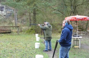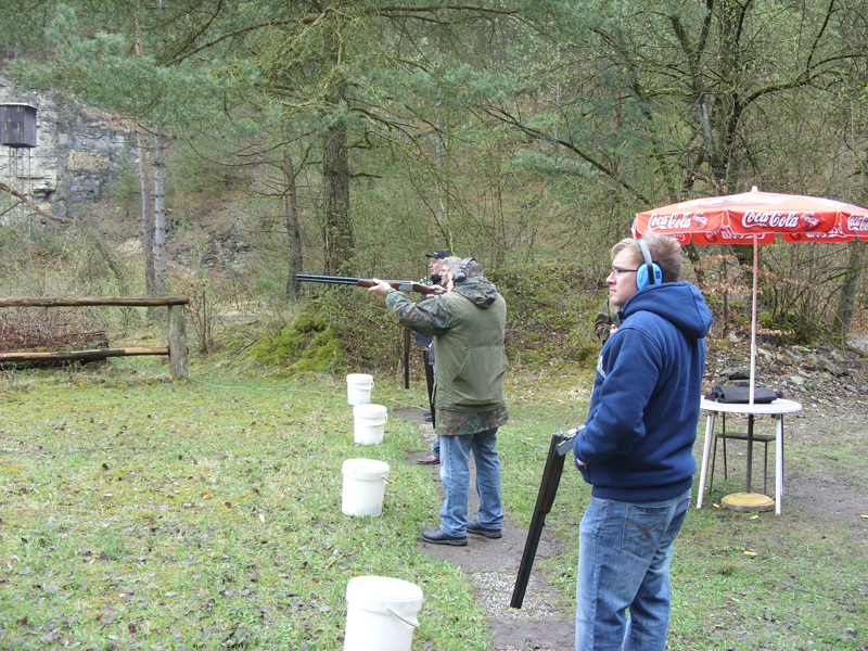 „Die Waffe in die Schulter gedrückt, ein Auge zugekniffen und etwas verkrampft stehe ich jetzt im Steinbruch und warte auf die ‚Taube‘“, so berichtet Norbert Reick von seinen ersten Versuchen. „Hab ich getroffen? Keine Ahnung.“ Als Treffer zählt ein Schuss, wenn ein sichtbares Stück von der Wurfscheibe abbricht. Aber davon waren einige Schüsse der Teilnehmer weit entfernt. Viele Wurfscheiben segelten unversehrt zum Waldrand und konnten am Ende wieder eingesammelt werden.