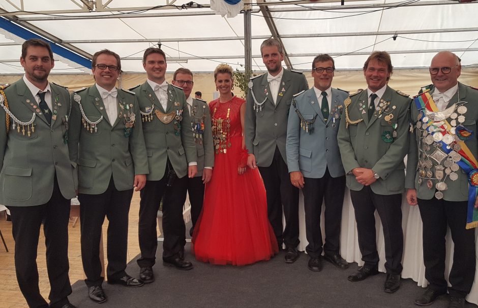 Mit einem großen Aufgebot war die Zweite beim diesjährigen Schützenfest in Ovenhausen vertreten. Zusammen mit dem Königspaar Christina und Christian Krog, dem kompletten Hofstaat, Hauptmann Alfred Micus, der Fahnenabordnung sowie rund 50 Schützen und Offizieren der 2. Kompanie präsentierten sie sich eindrucksvoll den zahlreichen Besuchern des Schützenfestes.