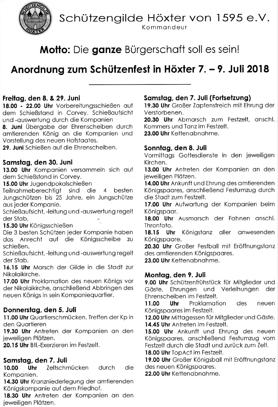 beginnt das Schützenfest der Schützengilde Höxter mit unserem Königschießen.