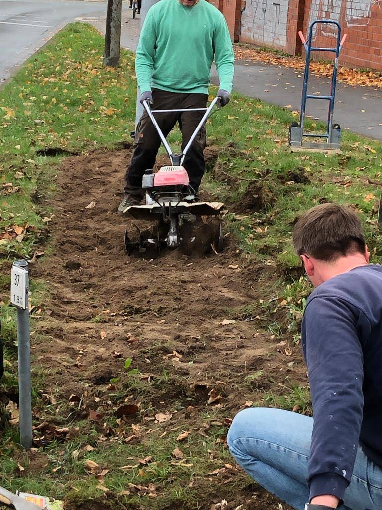 Eine Hälfte der Narzissen wird ab nächstem Frühjahr auf Höhe der Bushaltestelle an der Bollerbachbrücke ihre Blütenpracht entfalten.