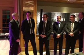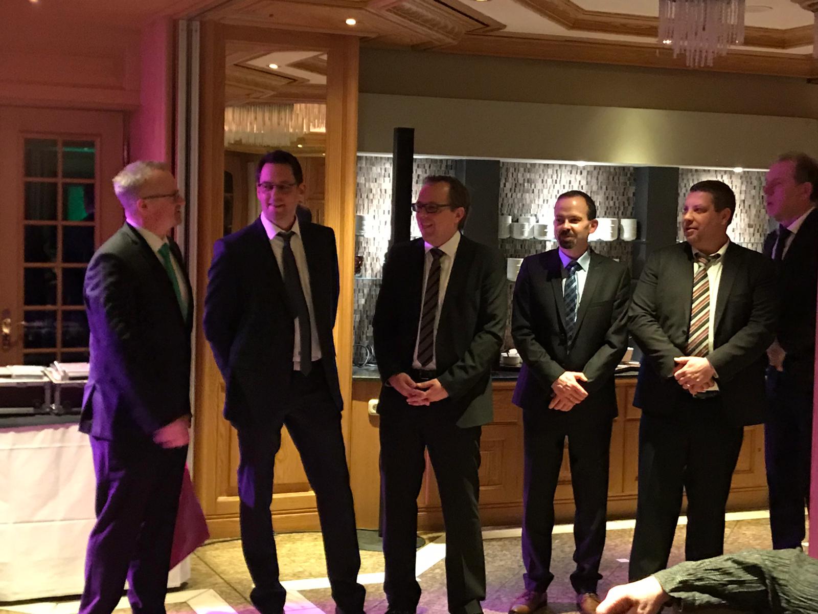 Nach einem Sektempfang und ein wenig Smalltalk im Foyer bat Jens Beineke in den festlich geschmückten Saal des Niedersachsens. Vorherrschende Farbe, neben den festlichen Kleidern der Damen und den schwarzen Anzügen der Herren, war natürlich unser Kompaniegrün.