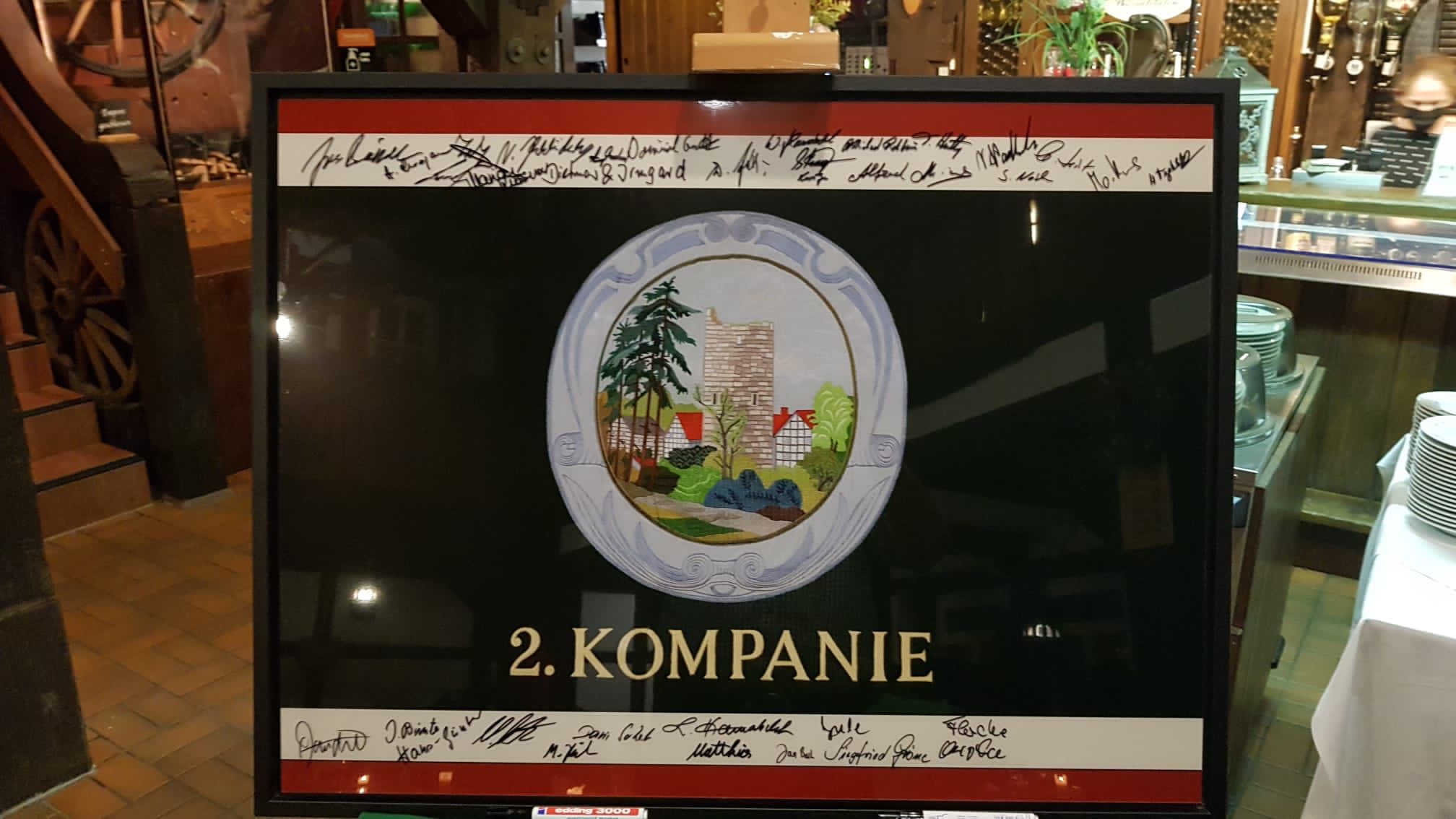 Höhepunkt des Abends war die Übergabe eines Bildes der Kompaniefahne auf dem alle Offiziere und ihre Damen unterschrieben hatten. Sichtlich gerührt versprach Alfred einen Ehrenplatz dafür in seinem Haus zu finden.