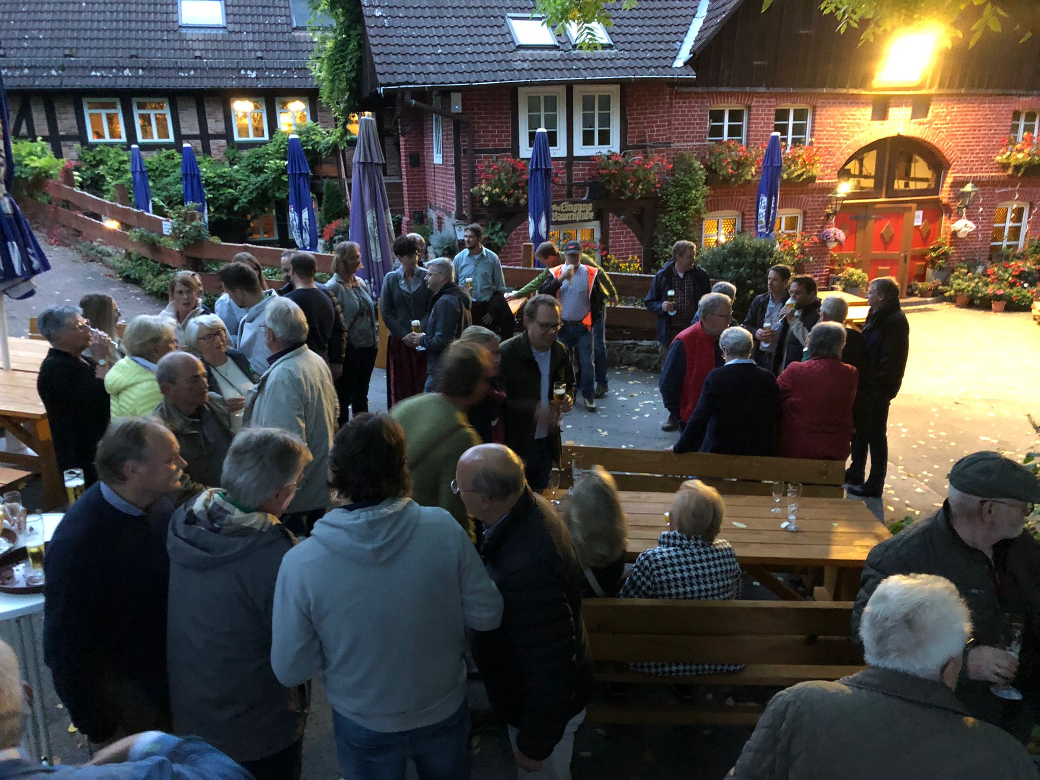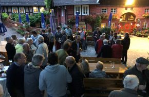 Nach einem kleinen Empfang, der aufgrund des tollen Wetters draußen stattfinden konnte, wurde in die Schenkenküche eingerückt.