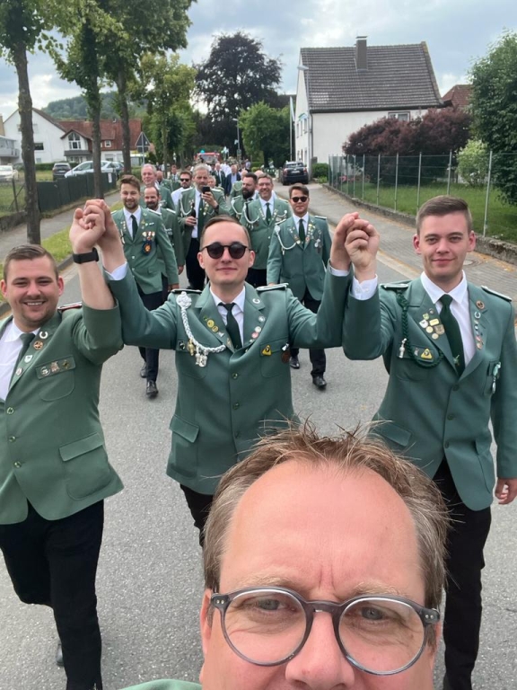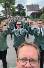 Nach Frühstück und Ehrungen haben es sich die Anwesenden nicht nehmen lassen, Marius und Franka auch am Montag im Umzug zu begleiten. Mit den Kameraden aus Bosseborn, Ovenhausen und Brenkhausen, sowie der  Kinderkompanie Lütmarsen wurde abermals bei bestem Wetter marschiert.