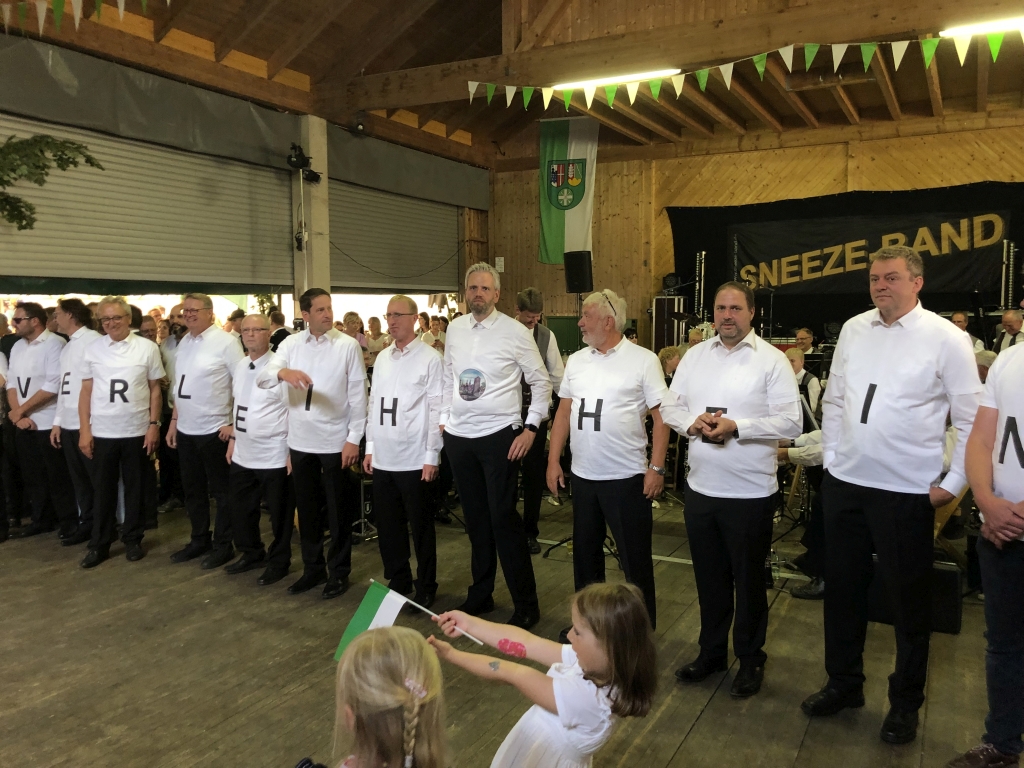 Nach Begrüßung und ein paar kühlen Getränken, wurde am Festplatz angetreten.