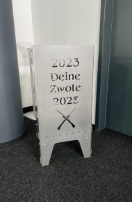 Es wurden T-Shirts für die Übergabe mit BügelBuchstaben versehen, und ein personalisierter Feuerkorb angefertigt, der Marius und Franka am Schützenfestsonntag in Lütmarsen übergeben werden soll !!