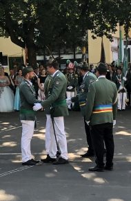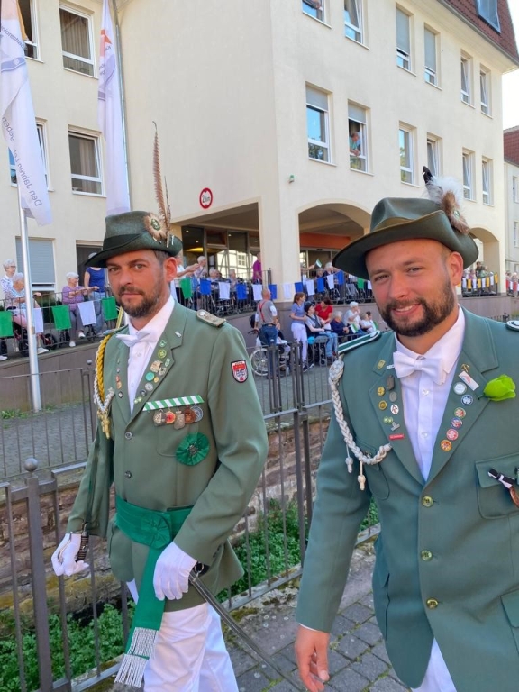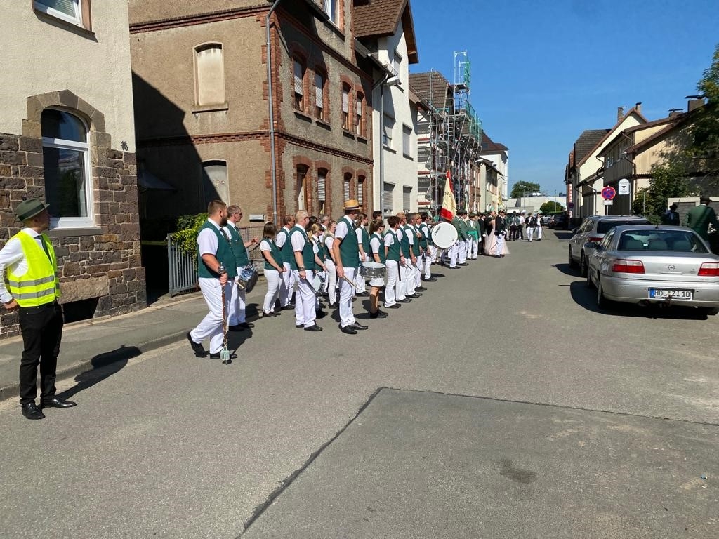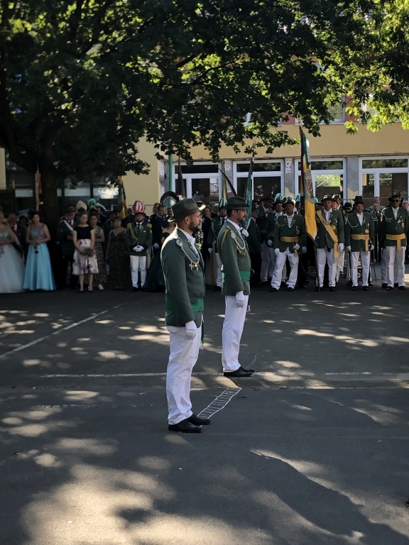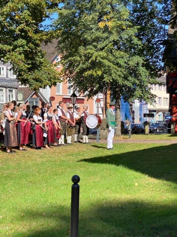 Vom Marktplatz aus wurde der Umzug gestartet. Bei ca. 30 Grad und schönstem Sonnenschein wurde mit den Gastvereinen und ihren Königspaaren und Hofstaaten durch Höxter marschiert.