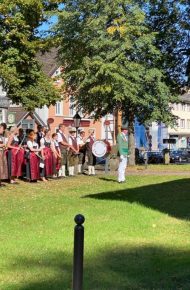 Von dort aus zum Antreten vor das Stadthaus in Höxter. Im Sternmarsch ging es in „Höxters gute Stube“ dem Marktplatz, wo sich das Bataillon sammelte und die Ehrengäste begrüßt wurden.